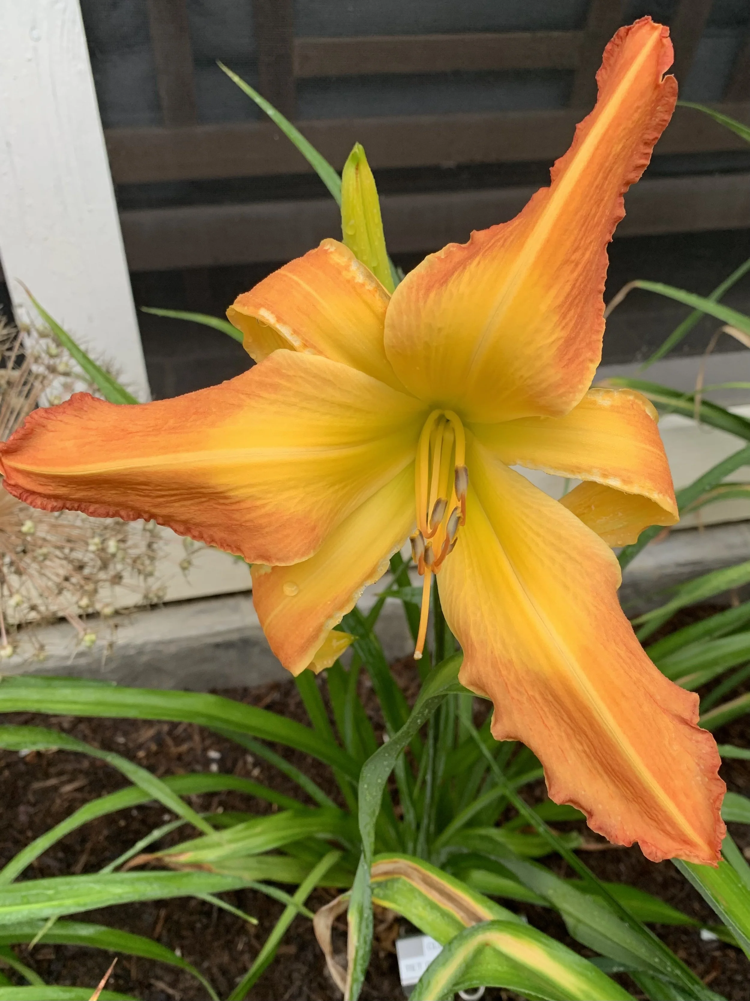 Light orange with a wide yellow watermark. Stunning bloom.