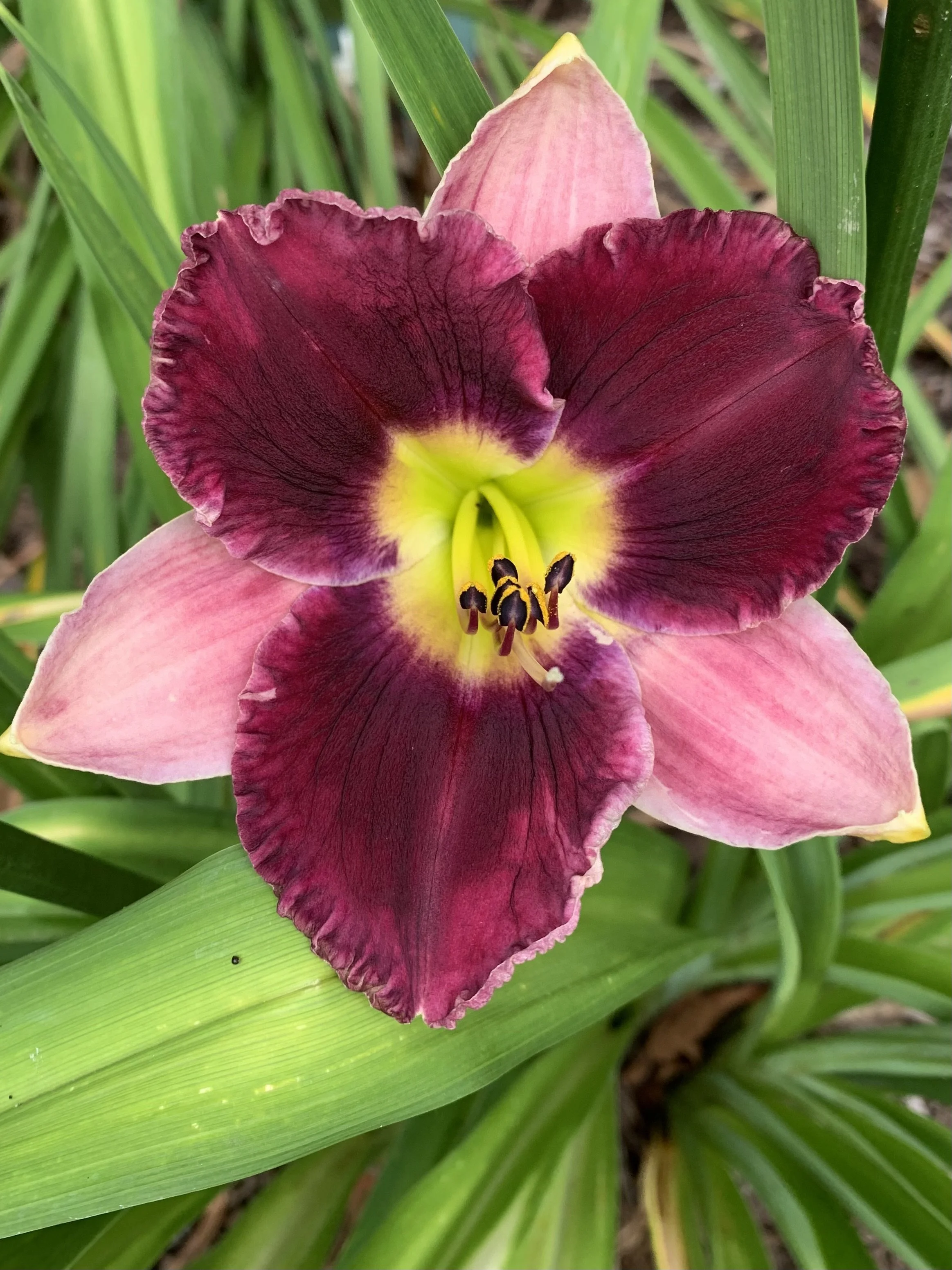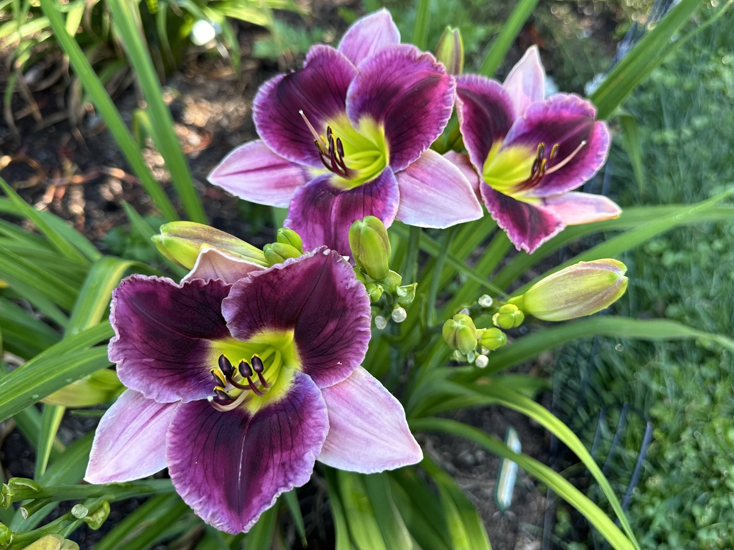 Violet and pale lilac bi-tone, green throat.