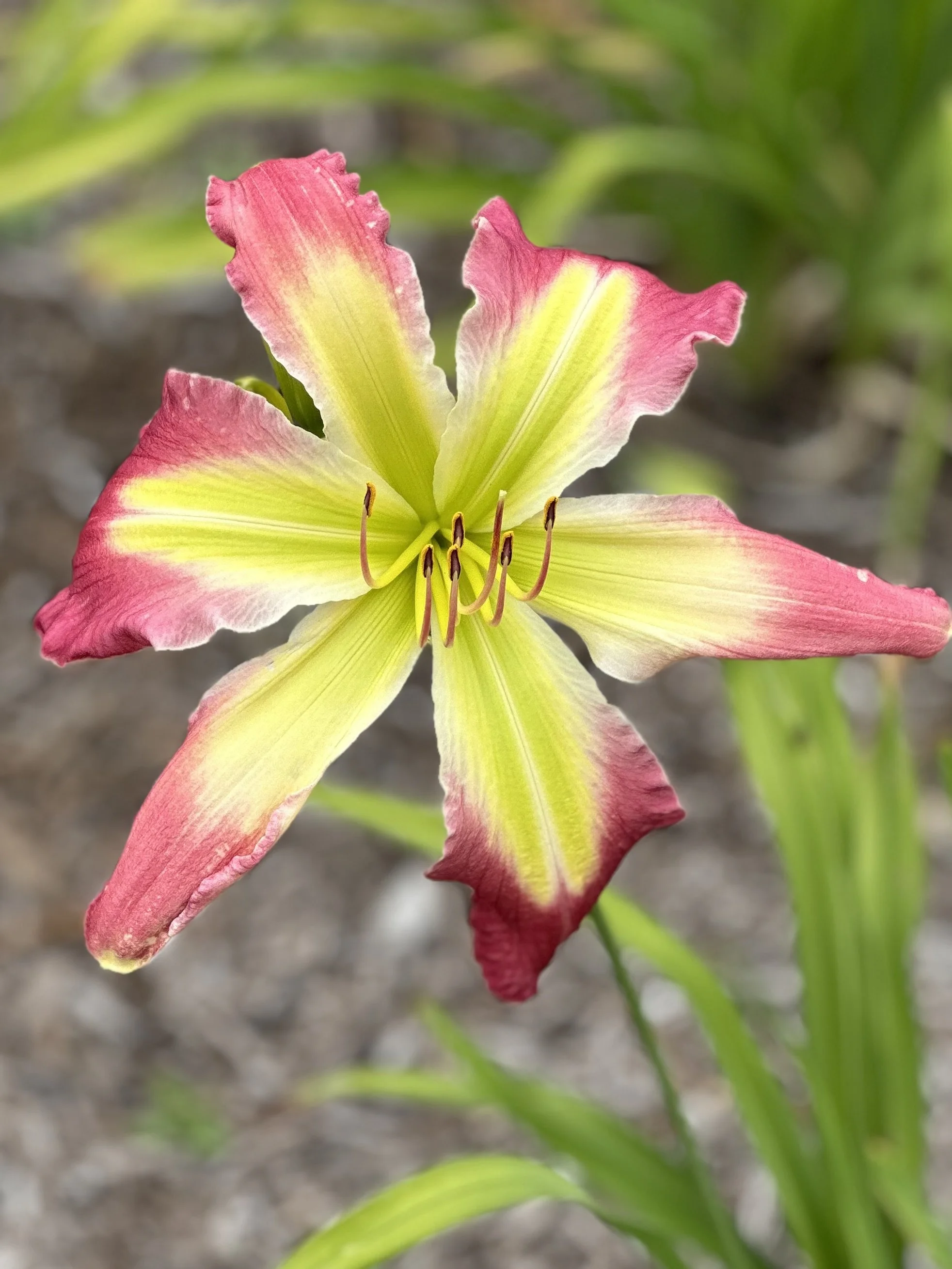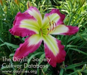 Rose pink with wide chartreuse throat extending to sepals.