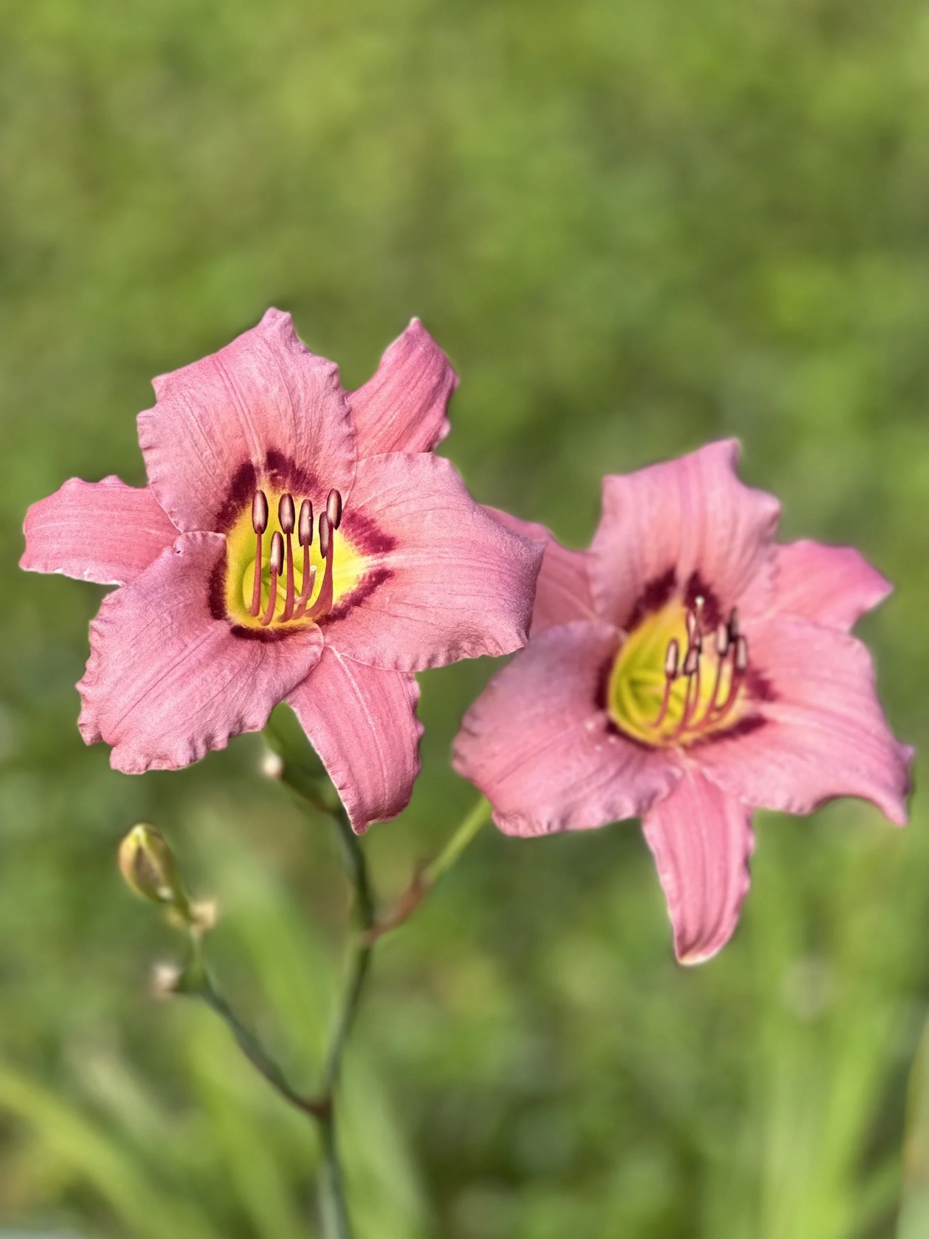 Lavender blend w wine eye over yellow to green throat. Makes an outstanding clump.