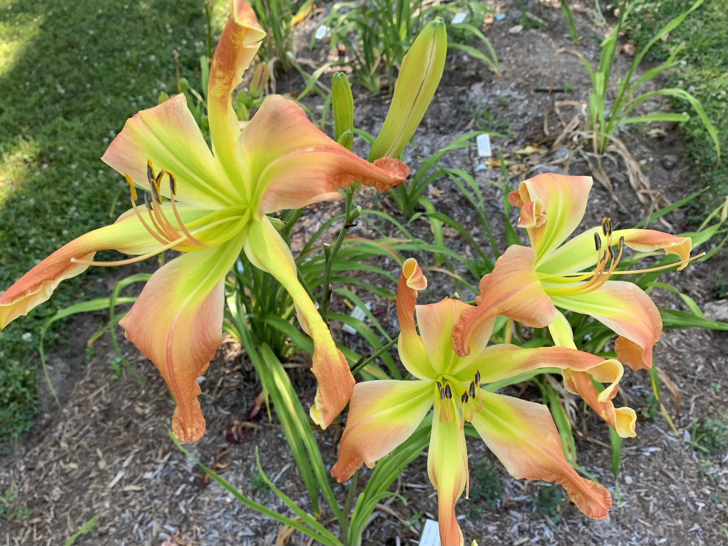 Apricot, thin white edge, green throat. A unique Clement intro with unusual coloring.