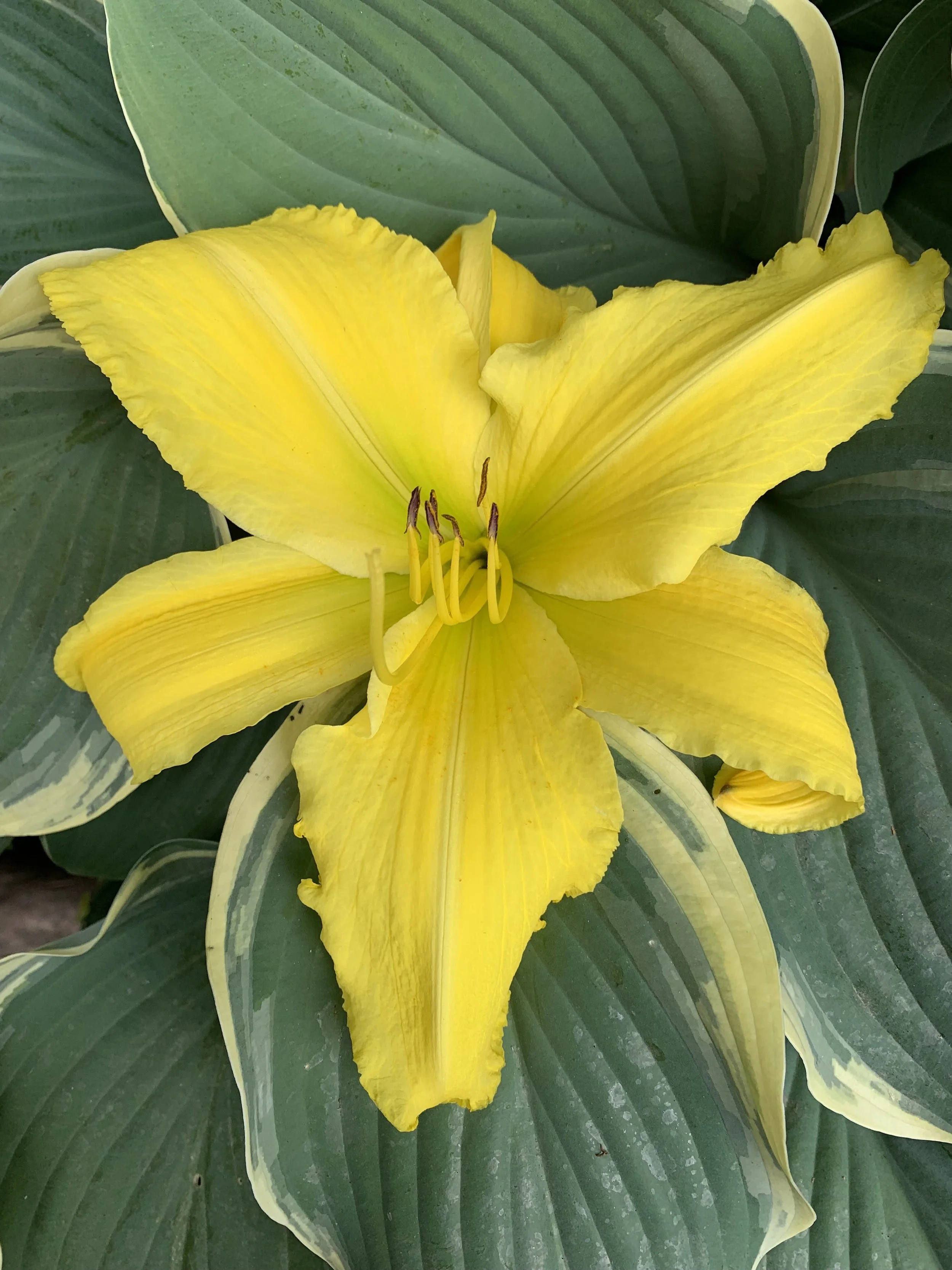 Yellow with green infusion above dark green throat. Polymerous 25%. Huge, bold bloom!