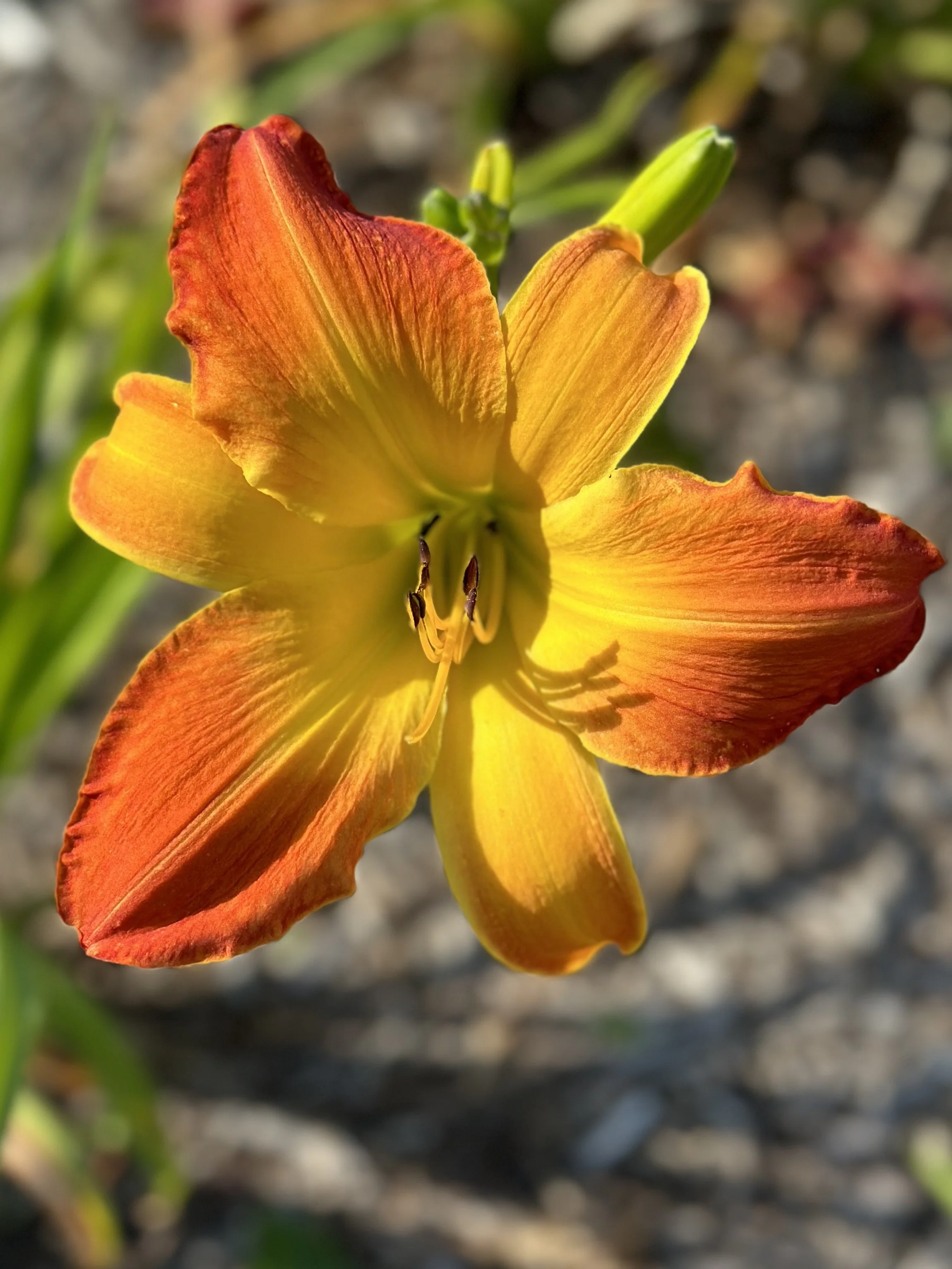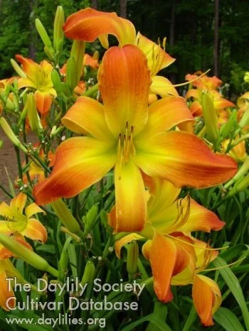 Orange bi-tone with darker orange eye zone and green throat. Large impressive bloom, a real standout in my garden.