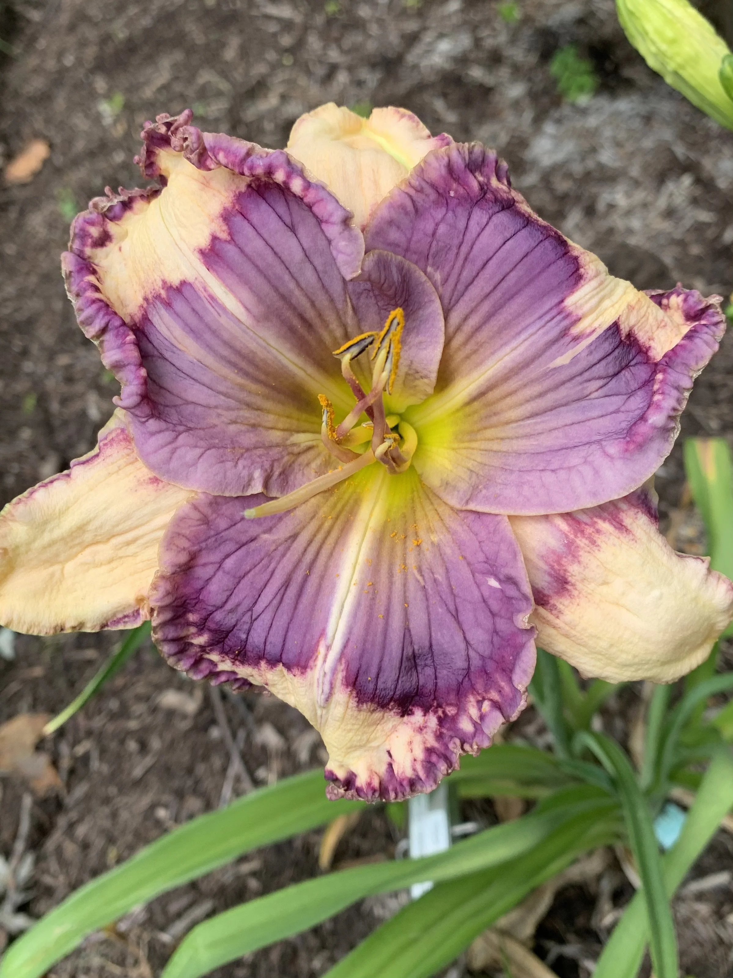 Cream, blue eye and edge, yellow to green throat. Incomparable.